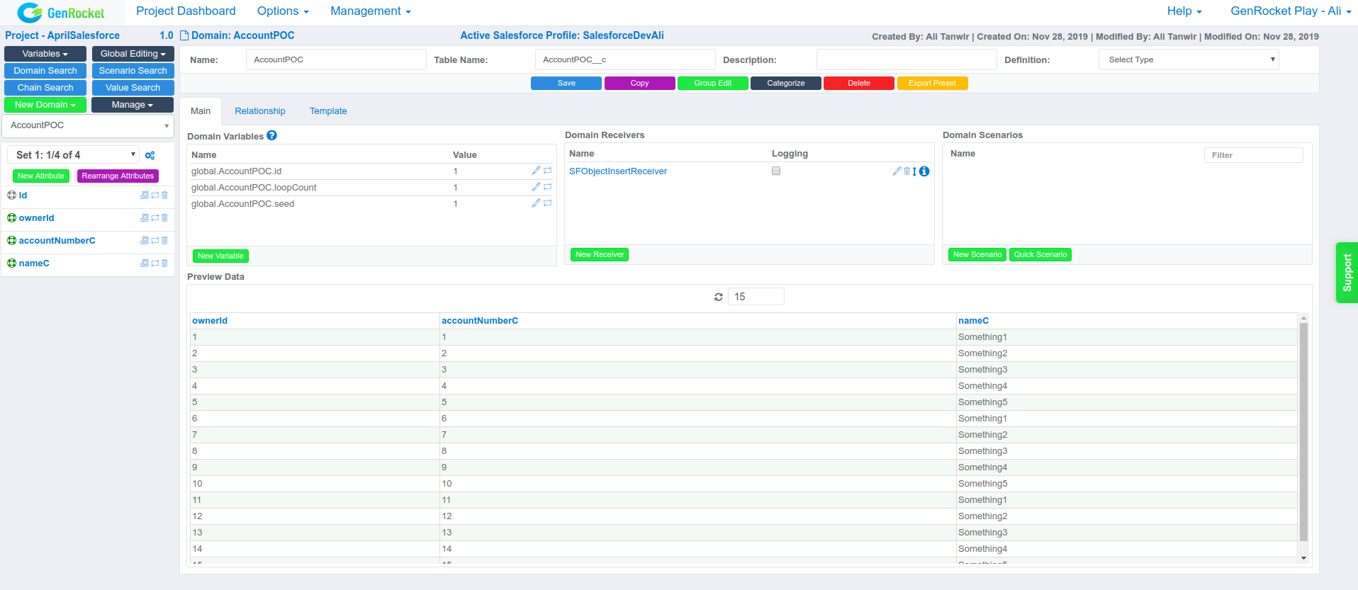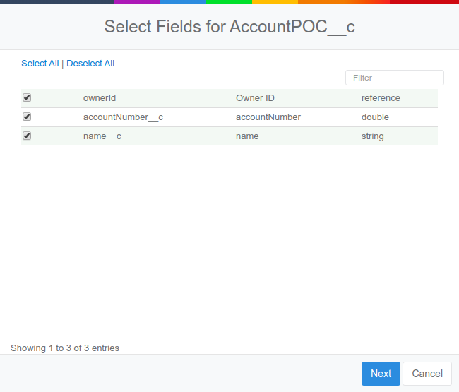 • The selected Salesforce Object and Fields will be imported into a Domain.