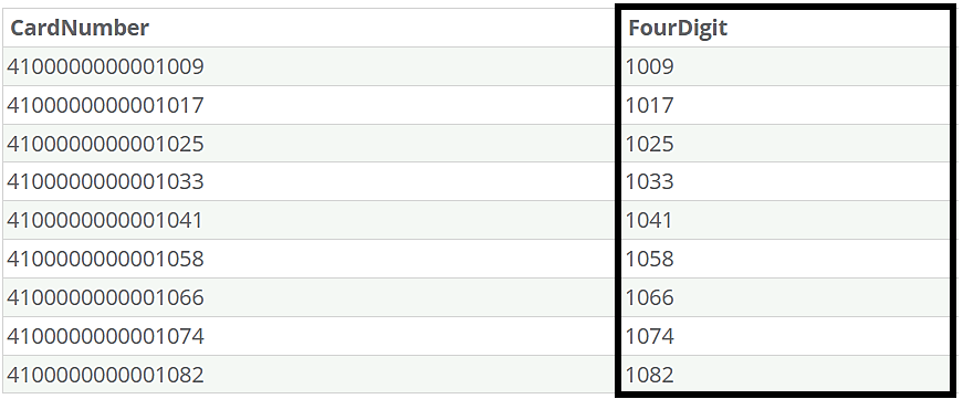 Example 1 - Generate the Last 4 Digits of Referenced Credit Card Number