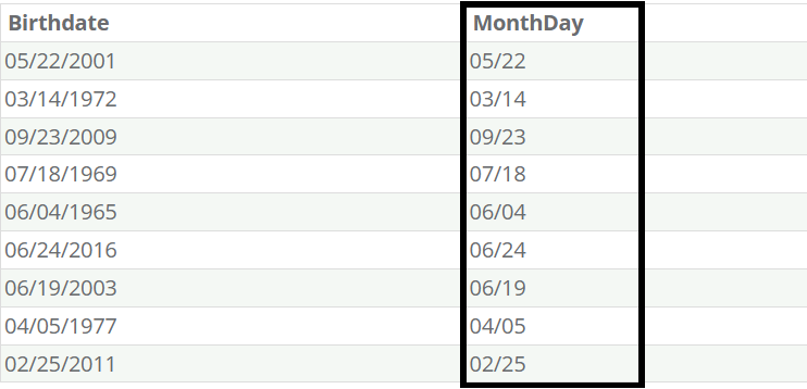 Example 2 - Generate the Birth Month and Day from a Referenced Birthdate