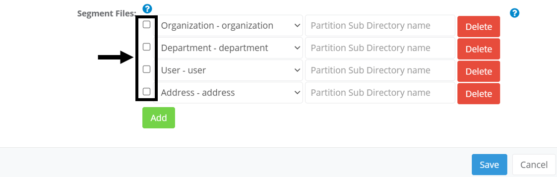 - ignoreLineSeparator checkbox- By default, this option is unchecked (i.e., false) for all Domain Segment files, and records for each segment will appear on a separate line in the generated output file.