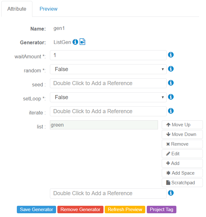 For this example, two ListGen Generators have been linked to the WeightGen Generator. These two Generators generate one color:
