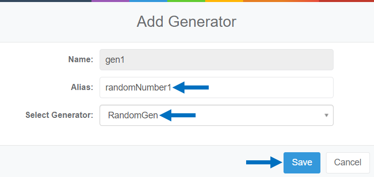 - Enter an Alias (optional) and select a Generator from the drop-down menu.