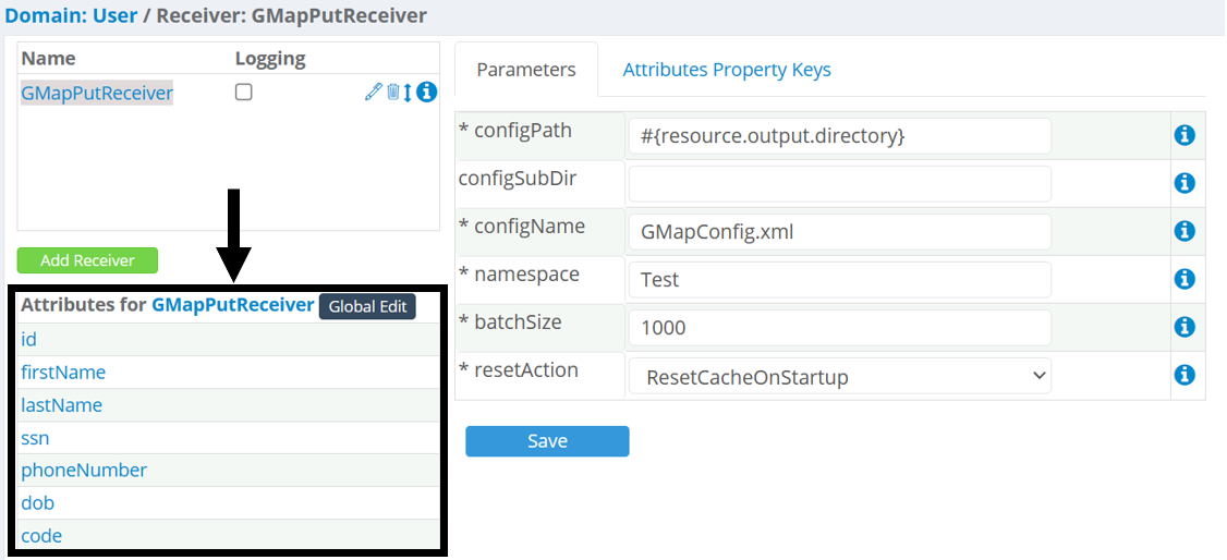 The GMapPutReceiver requires that the following parameters be defined. Items with an asterisk* are required.