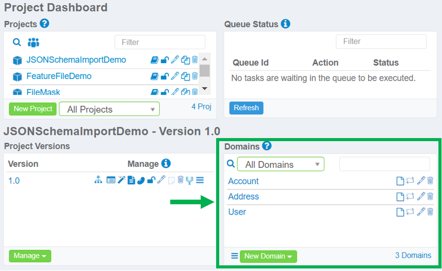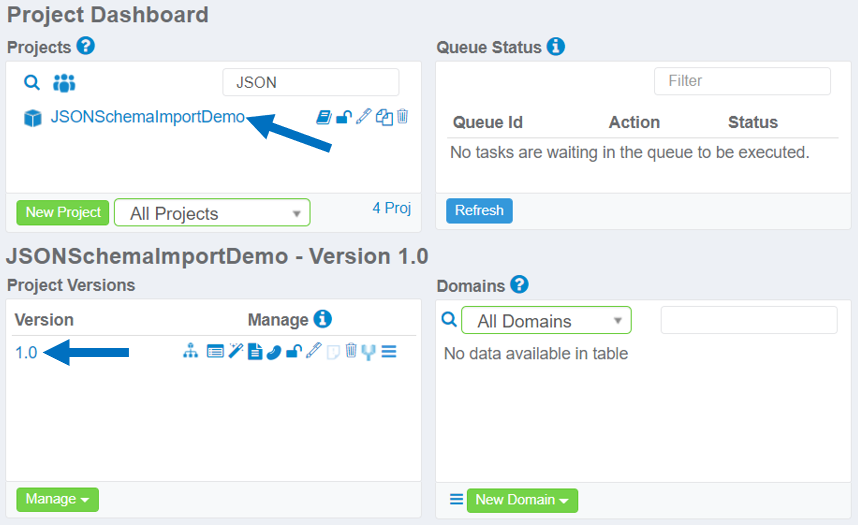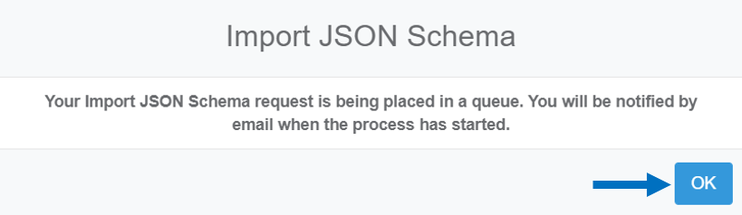 - The JSON Schema import will appear in Queue Status Pane within the Project Dashboard.