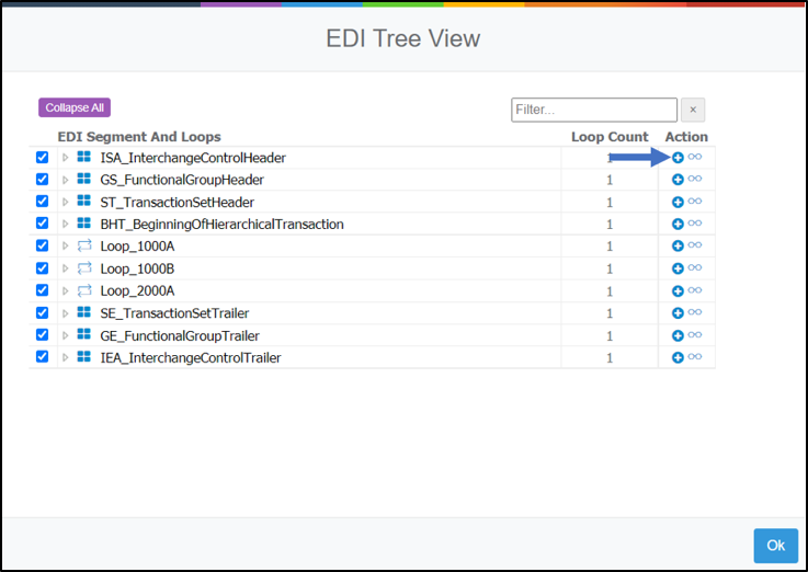 Step 3: Add the ISA_InterchangeControlHeader to the G-Case. To do so, open the EDI Tree View and click on the Add (+) icon within the Action Column for the ISA_InterchangeControlHeader.