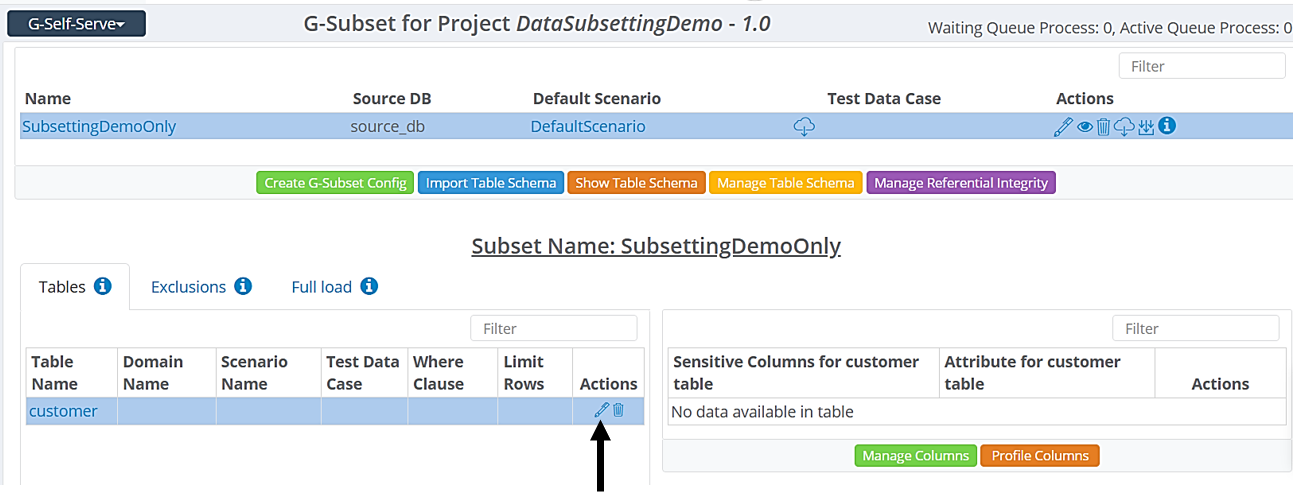 Next, the user adds the Customer Table to the G-Subset Cconfiguation. It must be added before the user can add data subsetting conditions.