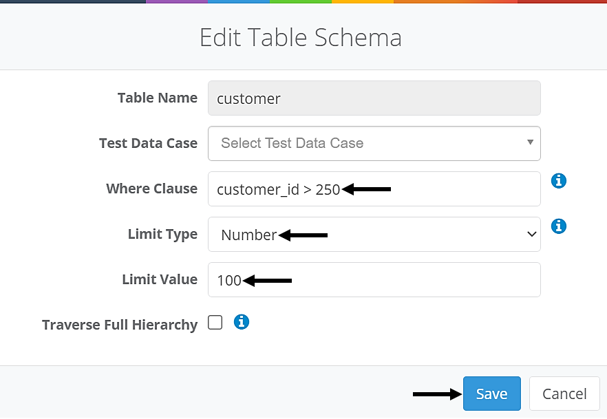 - Note: Click here for step-by-step instructions on configuring data subsetting conditions for a table.