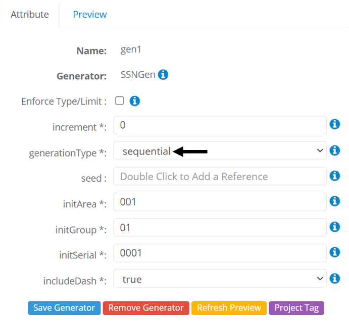 - ssn Attribute - No changes are required. The default configuration is set up to generate sequential social security numbers.