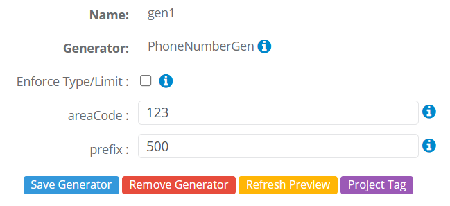 For this example, changes will be made only to the assigned phoneNumber Generator.
