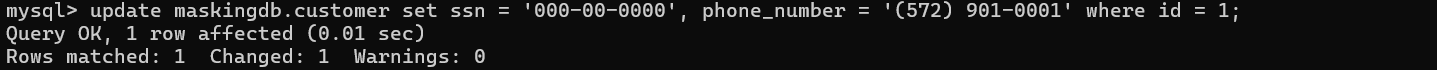 A user wants to replace all sensitive data values for the ssn and phone_number columns within a Customer table. They will use in-place masking to do so.