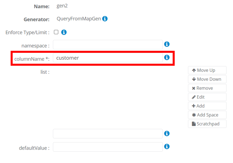 This happens when the wrong value has been entered for the columnName parameter within the QueryFromMapGen. It is looking for a column named 'customer,' which does not exist.