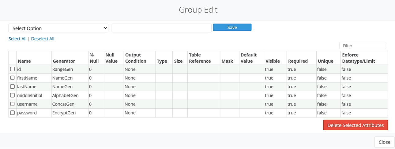 You can use the Group Edit feature to remove multiple Attributes from a selected Domain. It can also be used to edit parameters for multiple Attributes