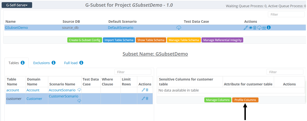 Users will see an additional "Profile Columns " option for the selected table in the G-Subset configuration. To see step-by-step instructions for using Data Column Profiling in G-Subset, click here.