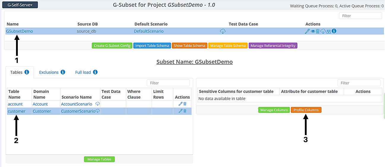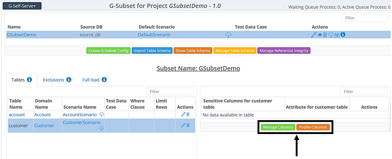 • Manual Identification and Selection - Manually select each sensitive column while adding a table to the G-Subset configuration, or use the Manage Column option to make selections after adding a table. Click here to learn more.