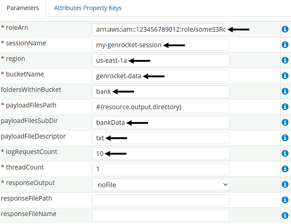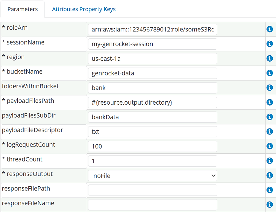 - sessionName* - Define the session identifier used in the STS authentication request. For example, you can use "genrocket" to indicate the request was initiated by GenRocket, making it easier to identify who is connecting.