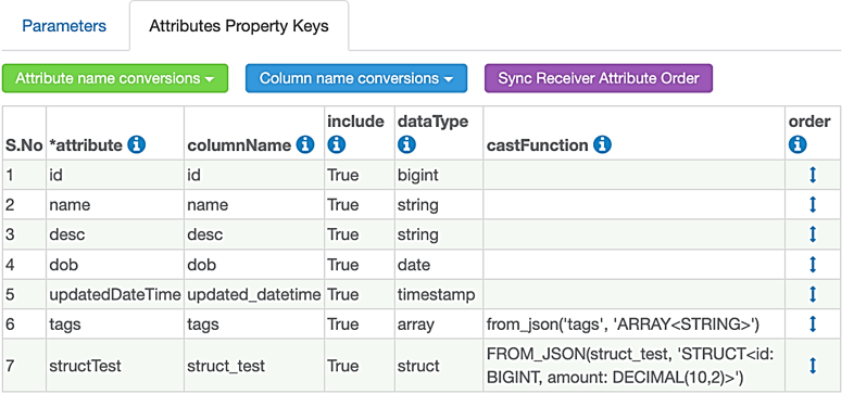 - Make sure to define the correct datatype and castFunction for each attribute under each property key.