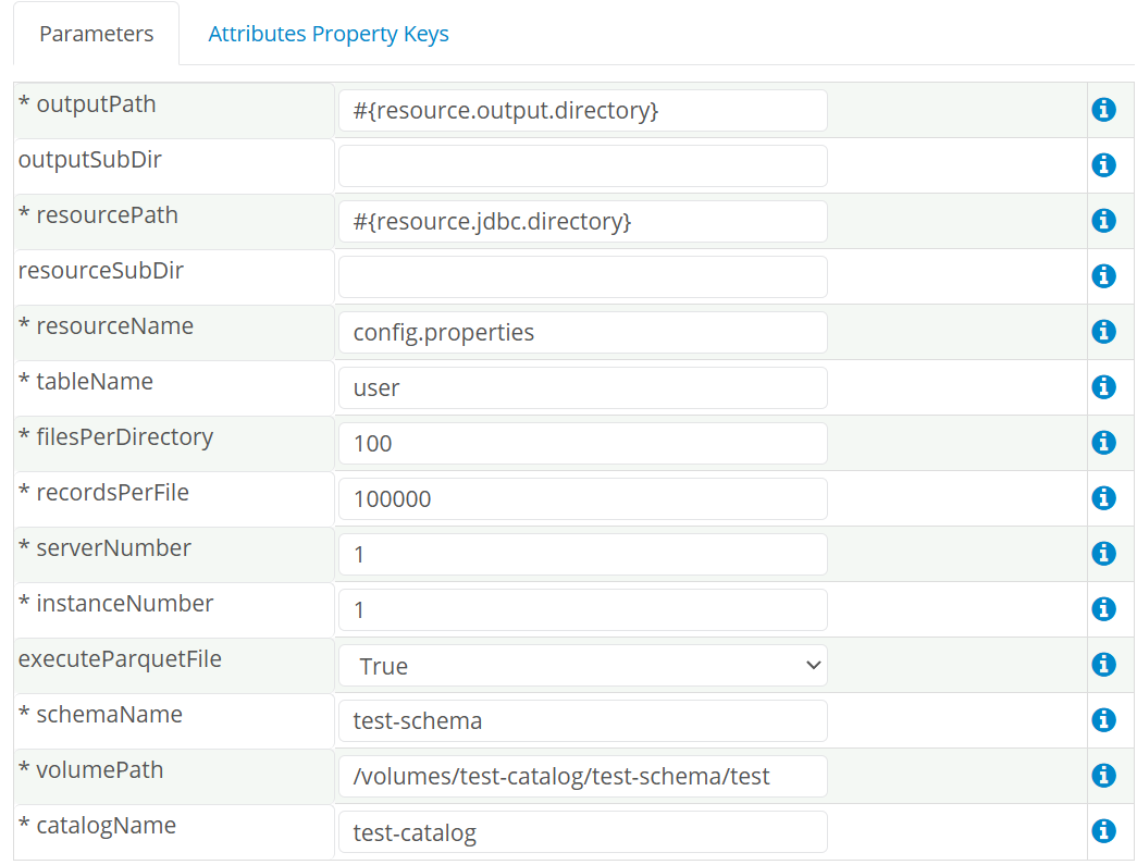 The following parameters can be defined for the DatabricksPartitionReceiver. Items with an asterisk (*) are required.