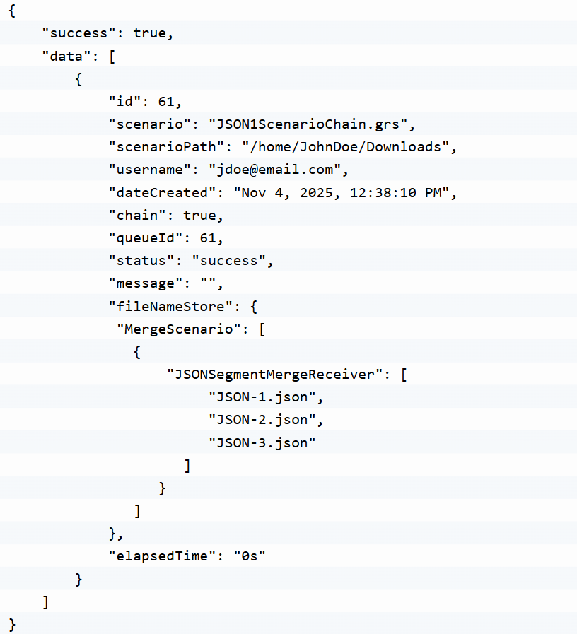 - GMUS / GMUS and GRepo Queue History Response Details - Additional information is now provided in the GMUS API response, including the file names, elapsed time. An example is shown below for GMUS API Queue History: