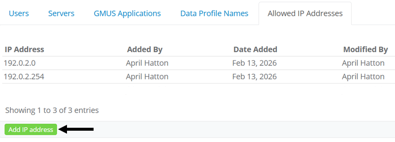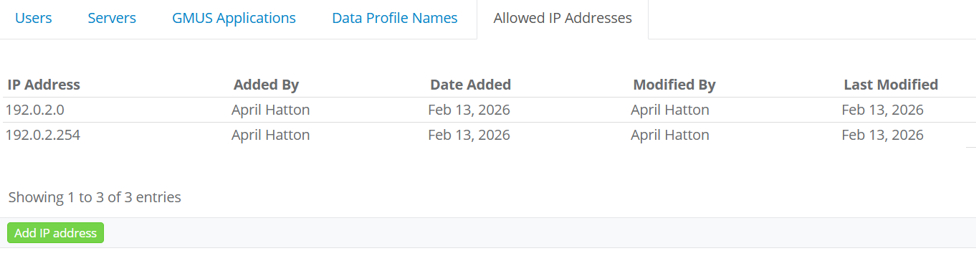 - Anyone who is an Organization Admin can see the following for each added IP address:
